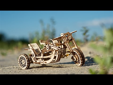 Your new Scrambler bike from UGears is ready for a full-on adventure and hitting the road, both asphalt and dirt! Mid 20th century saw the production (initially by Triumph and BSA) of a city bike, which also managed off-road riding effortlessly. Such dual functionality was achieved by a peculiar suspension design and relatively high placing of the mufflers, the engineering feats also used in our new model. Like the original Scrambler, the set from UGears features a fork and pendulum suspension, both at the back and the front. This ensures a fast and steady ride you are bound to utterly enjoy! This model will appeal to all those who can’t imagine their life without traveling and the air of freedom, which this amazing bike seems to embody through its combination of retro design and advanced mechanics. The model features a side car for that extra passenger, which will make the journey even more memorable.