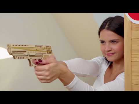 Wolf-01 Ugears mechanical handgun features smart ergonomic design that allows it fit perfectly in your hand and is convenient to aim and shoot. Sleek and stylish, it’s equipped with extra fun features such: a special quick-release fixture to hold a light torch for night-time missions and a secret storage in the handle that can be used to keep rubber band ammunition. Wolf-01 has a safety lock that prevents unwanted release or misfires. Excellent performance and superb technical specifications of Wolf-01 make it an ideal choice for spy, military and combat action games.